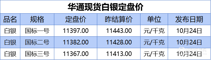 上海华通现货白银定盘价:一号国标、二号国标、三号国标如下: