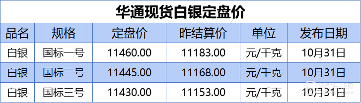 上海华通现货白银定盘价:一号国标、二号国标、三号国标如下:
