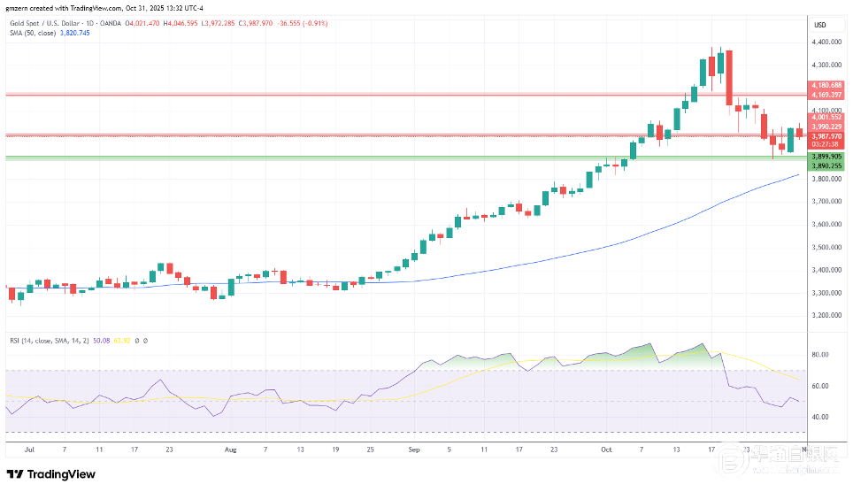 如果金价回落至3990美元下方,则将向最近的支撑位3890-3900美元区间移动。