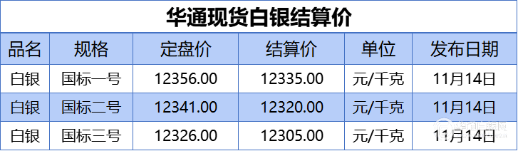 上海华通现货白银结算价:一号国标、二号国标、三号国标如下: