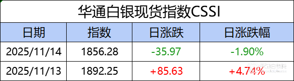 华通白银现货指数CSSI走势日报(2025-11-14)