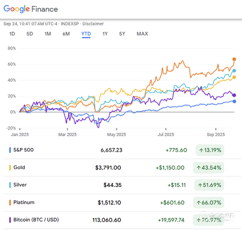 (到目前为止,铂金和白银在2025年击败了黄金、比特币和标普500)