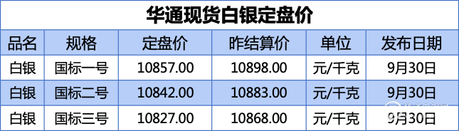 上海华通现货白银定盘价:一号国标、二号国标、三号国标如下: