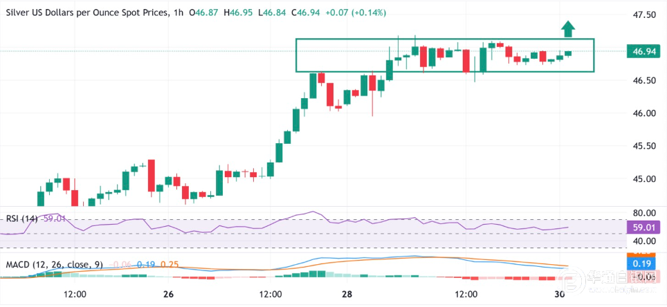 白银价格仍然被限制在接近自2011年5月以来的最高水平,触及前一天触及的最高水平,并在周二的亚洲交易日交易点刚刚低于47.00美元。
