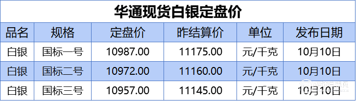 上海华通现货白银定盘价:一号国标、二号国标、三号国标如下: