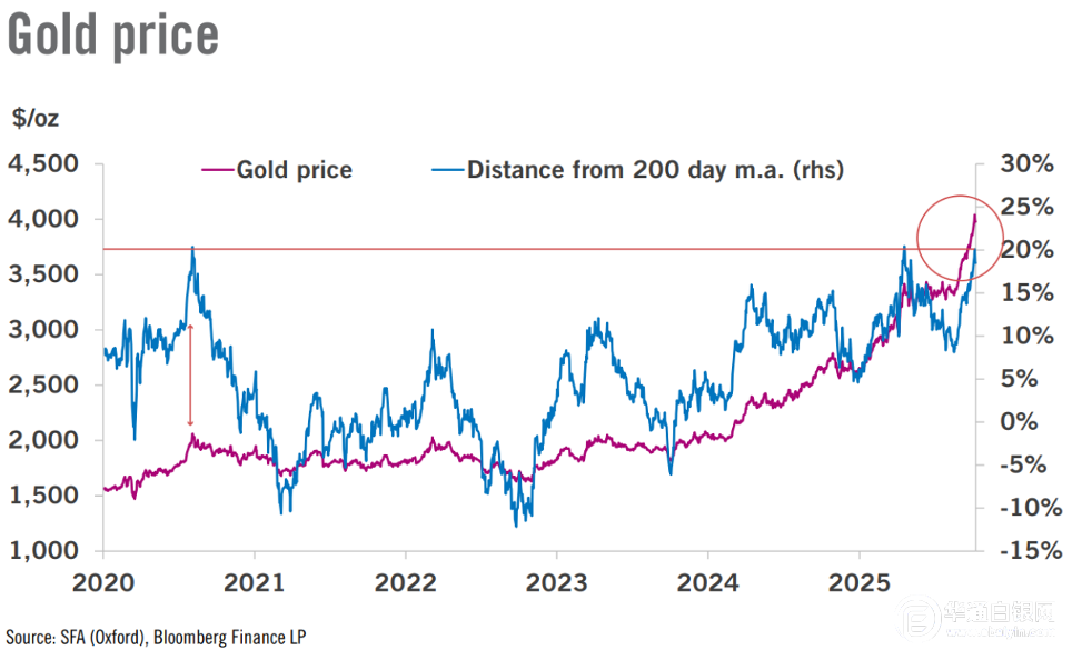 贺利氏分析师们表示:“明显偏离200日线也暗示市场已被拉伸至极端水平。”