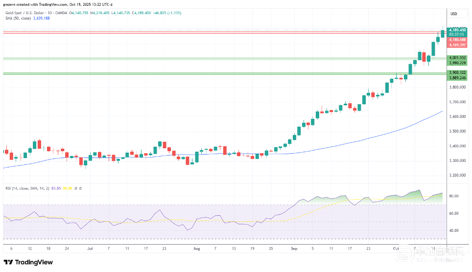 【华通白银网10月16日讯】•交易员押注美联储降息,金价试图收于4200美元上方。