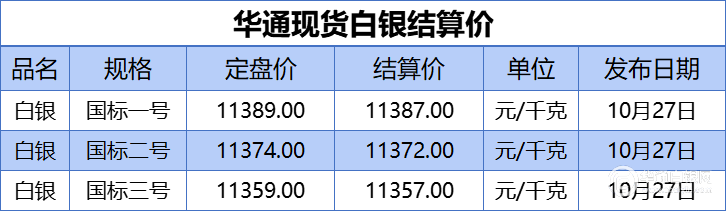 上海华通现货白银结算价:一号国标、二号国标、三号国标如下: