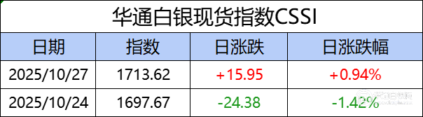 华通白银现货指数CSSI走势日报,今日指数1713.62,日涨跌+15.95,日涨跌幅+0.94%