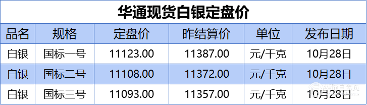 上海华通现货白银定盘价:一号国标、二号国标、三号国标如下: