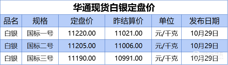 上海华通现货白银定盘价:一号国标、二号国标、三号国标如下: