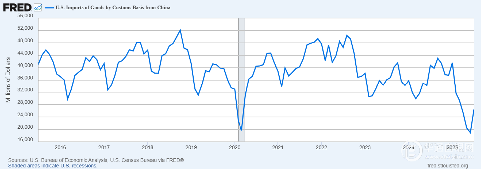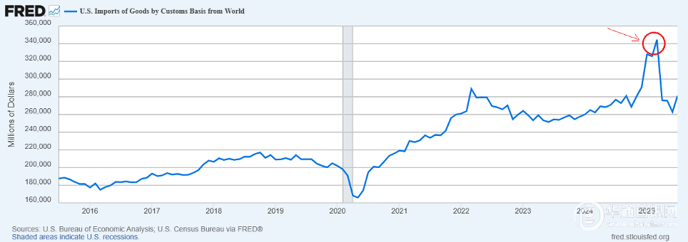 下图显示,由于企业急于在新关税之前建立库存,美国进口在2025年第一季度激增。然而,到2025年7月,进口又开始上升。这表明,尽管提前装载发生得更早,但美国的整体需求仍保持弹性。