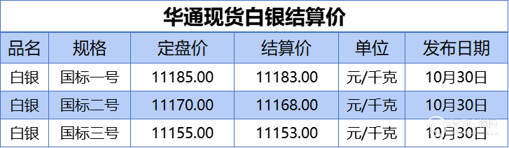 上海华通现货白银结算价:一号国标、二号国标、三号国标如下:
