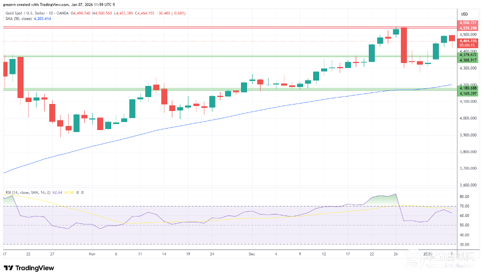 【华通白银网1月8日】•黄金未能收于4500美元/盎司上方。