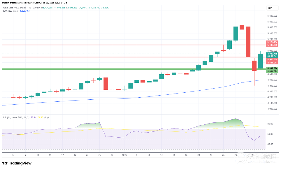 黄金试图在4880-4900美元阻力位上方企稳,此时交易员们利用近期的抛售机会增加多头仓位。