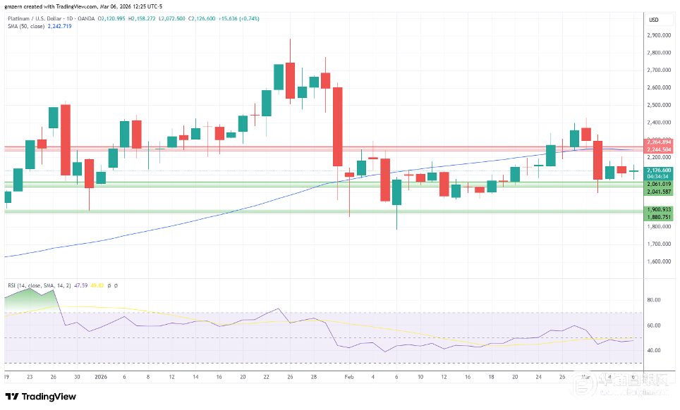 铂金价格仍徘徊在2100美元附近
