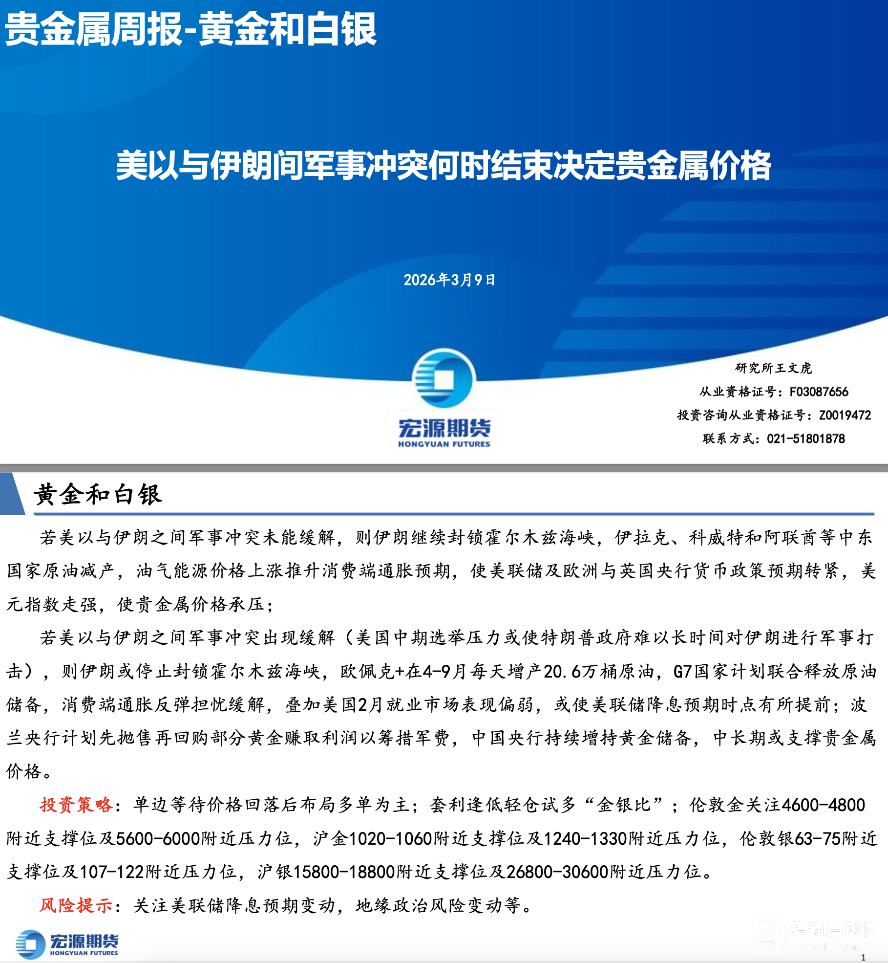 贵金属周报——美以与伊朗间军事冲突何时结束决定贵金属价格