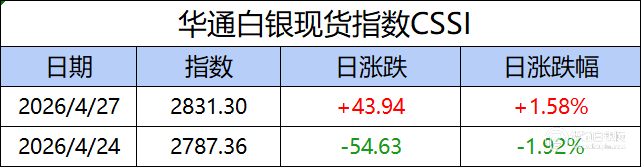 华通白银现货指数CSSI走势日报(2026-04-27)