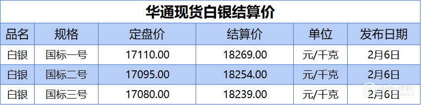 上海华通现货白银结算价:一号国标、二号国标、三号国标如下: