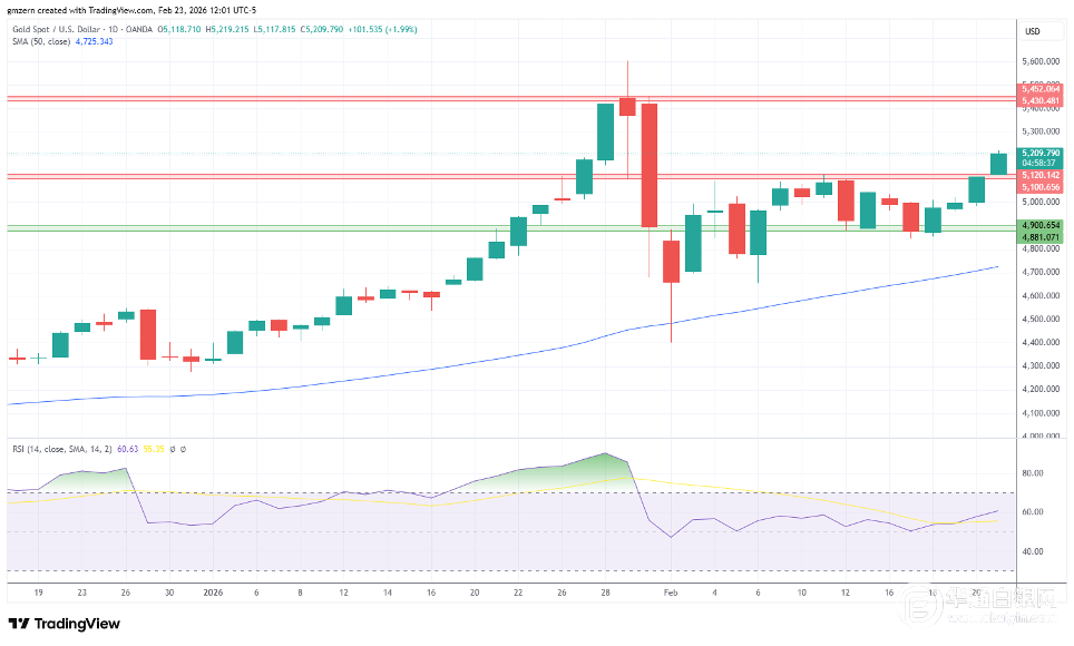 不出所料,由于关税政策的不确定性,黄金价格再创新高。黄金价格突破了5100-5120美元阻力位,并正试图稳定在5200美元上方。如果这次尝试成功,黄金将向下一个阻力位进发,该阻力位位于5430-5450美元区间。