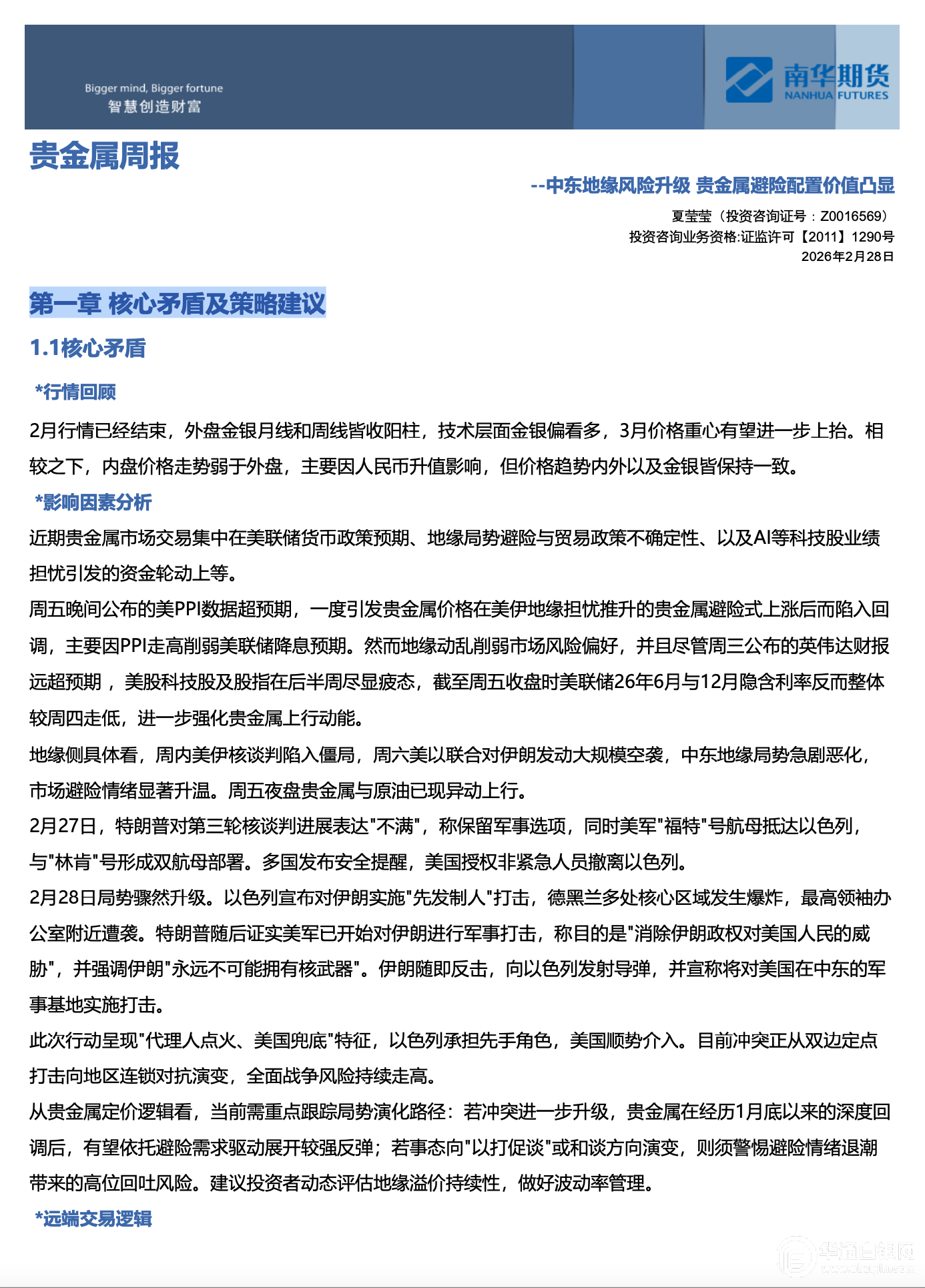 贵金属周报--中东地缘风险升级 贵金属避险配置价值凸显
