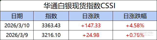 华通白银现货指数CSSI走势日报,今日指数3363.43,日涨跌+147.33,日涨跌幅+4.58%