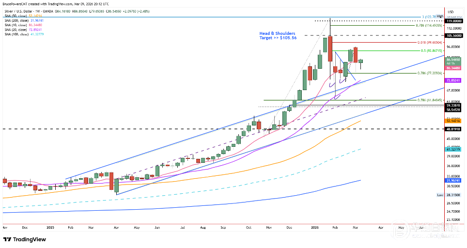 (现货银周线图显示长期看涨结构)
