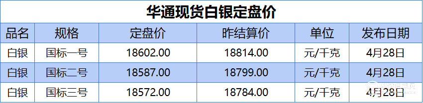 上海华通现货白银定盘价:一号国标、二号国标、三号国标如下: